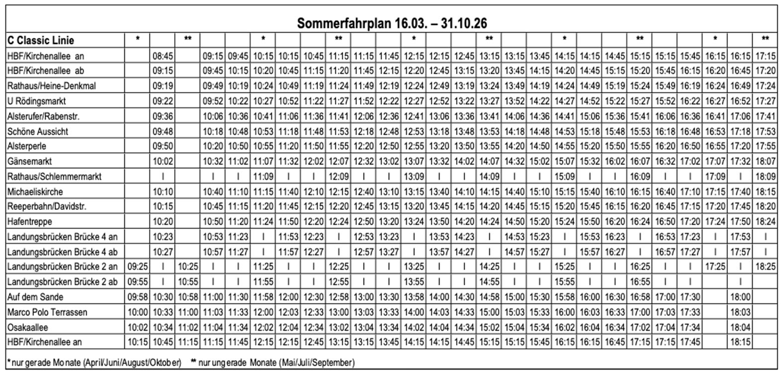 Line C – The Classic Line takes you to all of Hamburg's highlights and once around the Außenalster.